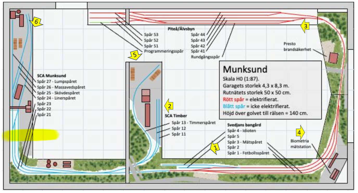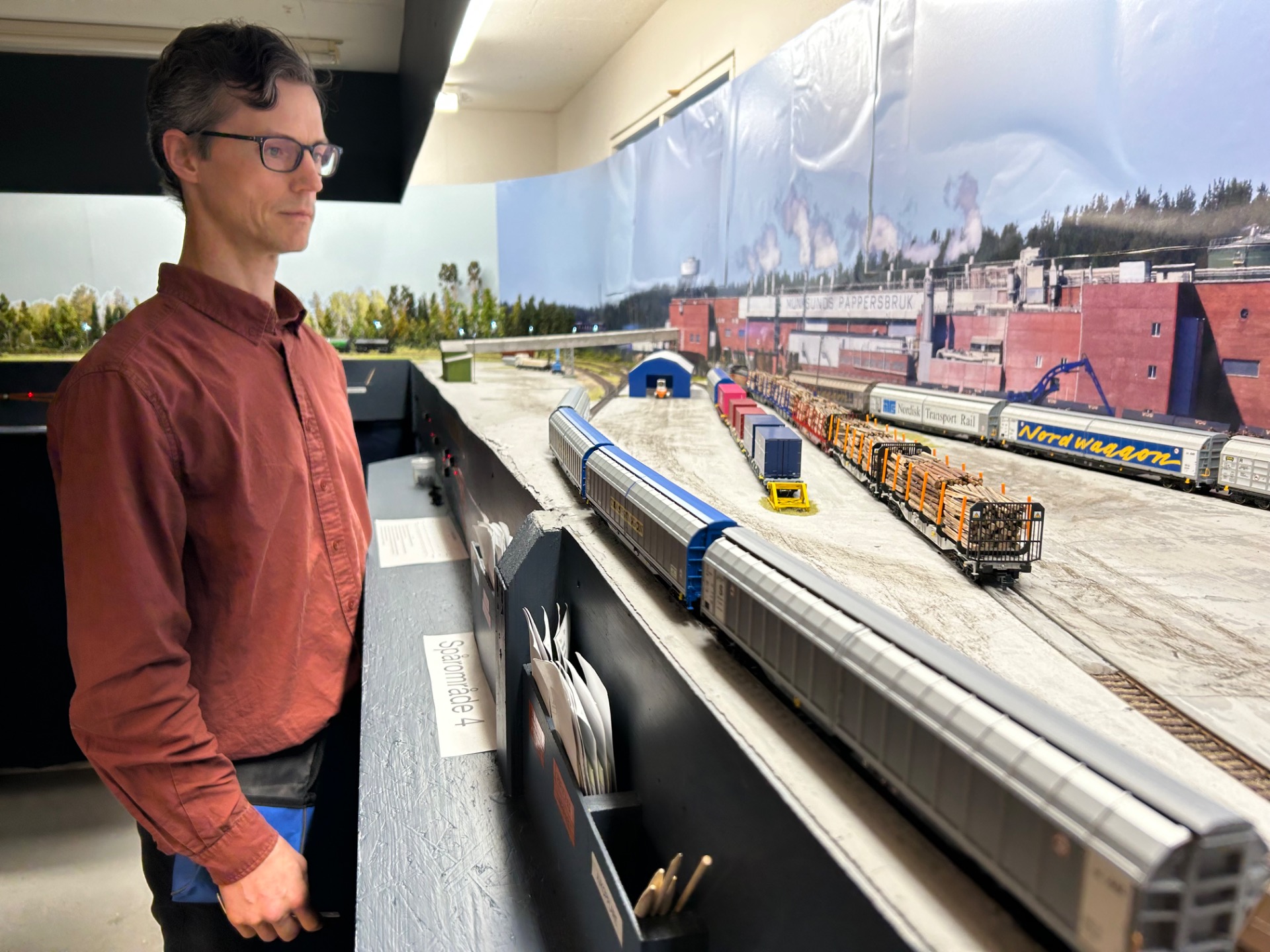 Som jag berättat tidigare har Staffan en mycket fin anläggning som avbildar industrierna i Munksund utanför Piteå. Här finns pappersbruket SCA Munksund, sågverket SCA Timber, bangården Svedjan, samt en skuggbangård som representerar Piteå och Älvsbyn med anslutningen till stambanan genom övre Norrland.
