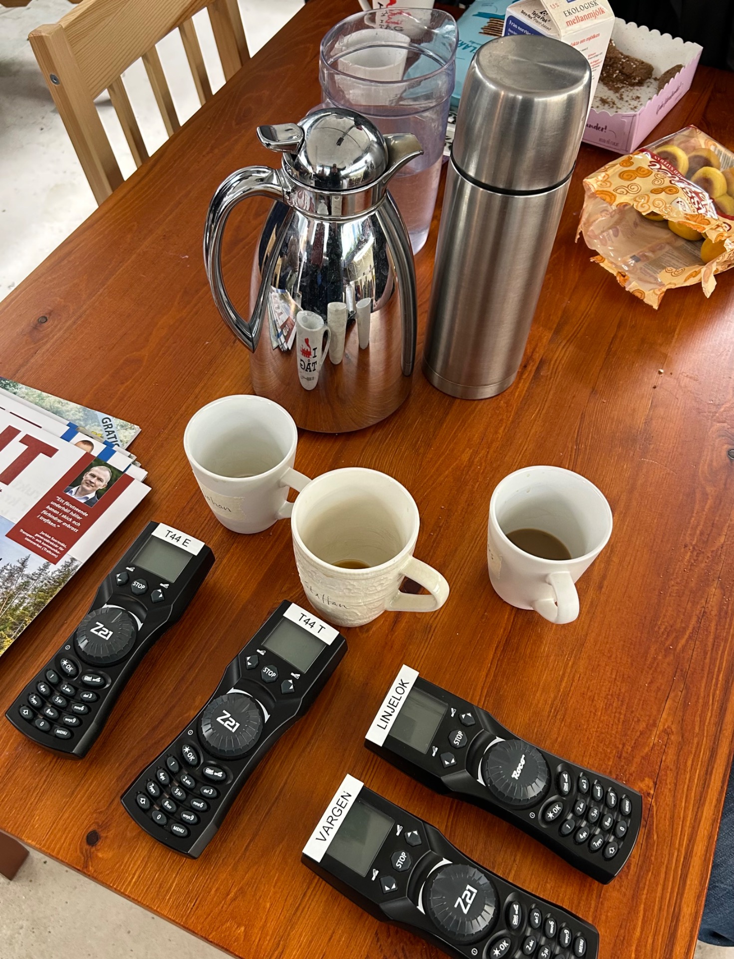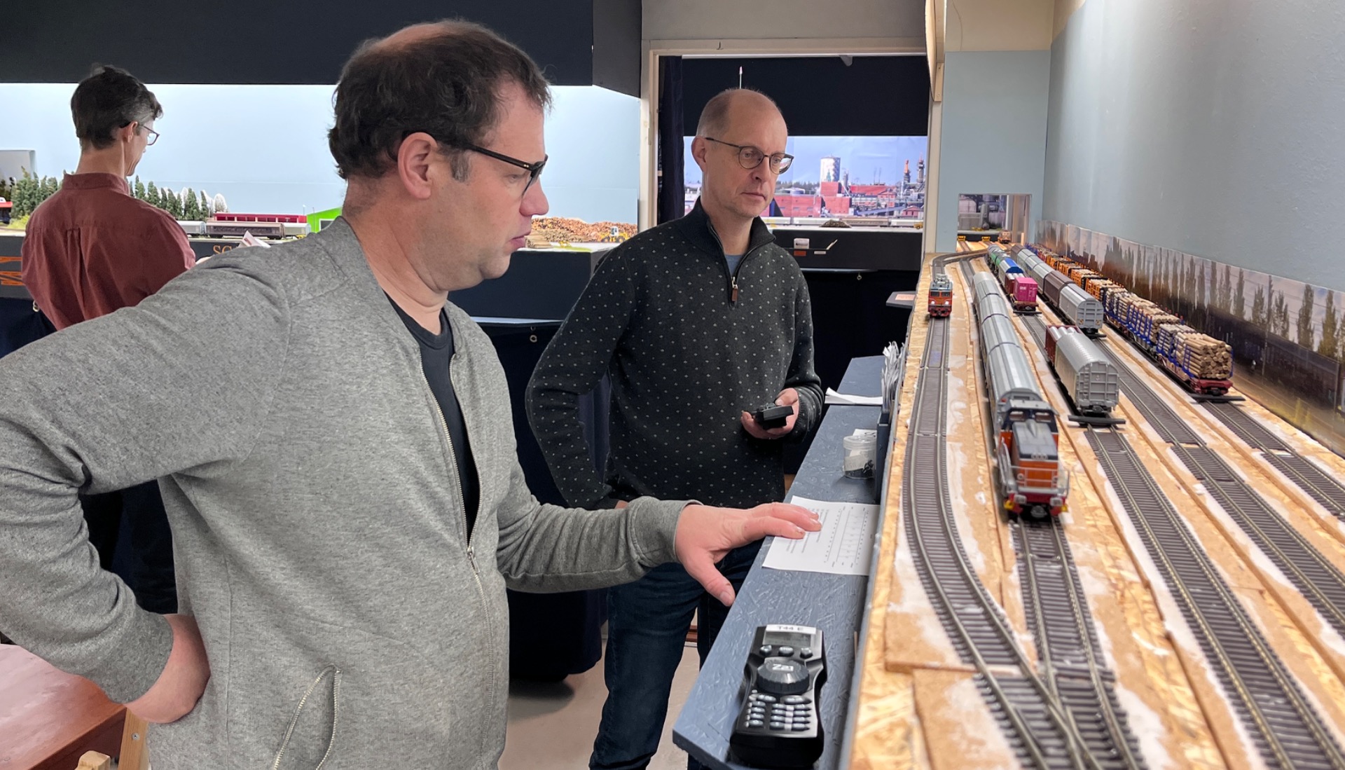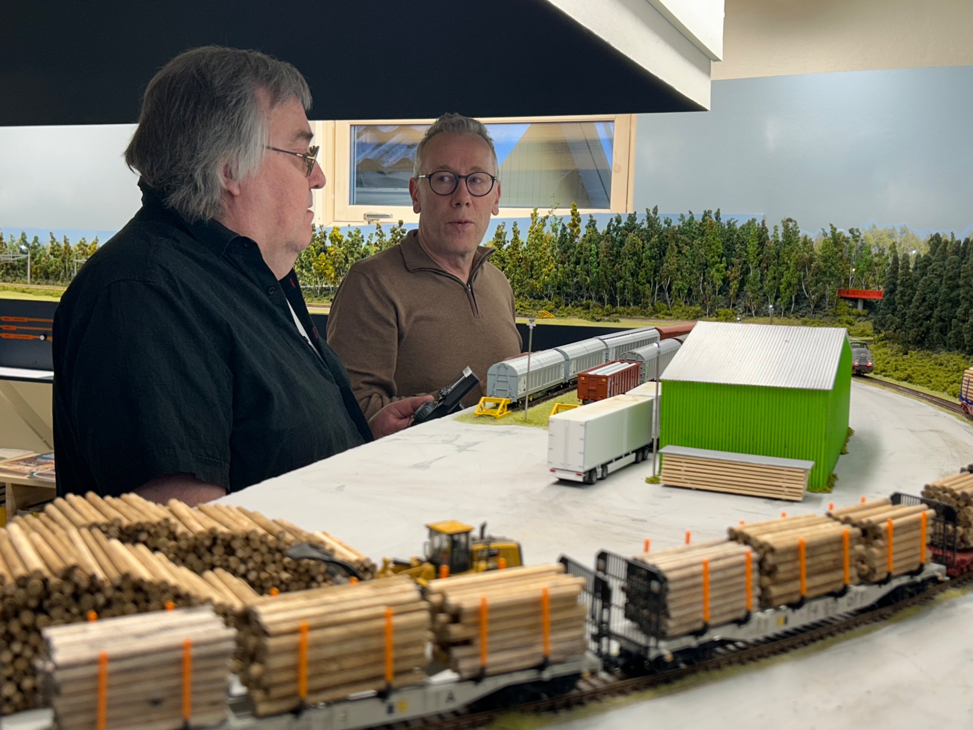 Första akten tog knappt två timmar. Efter det bjöd Staffan på varmkorv till lunch. Tyvärr var jag sedan tvungen att avvika innan andra akten var färdigspelad, men är ändå mycket nöjd med dagen. En välbyggd anläggning med lok och vagnar som rullar problemfritt, en lättförståelig trafikidé som ändå bjuder på utmaningar i växlingen, och sist men inte minst Staffans välkomnande och generösa bemötande, allt gör att jag mer än gärna kommer igen.